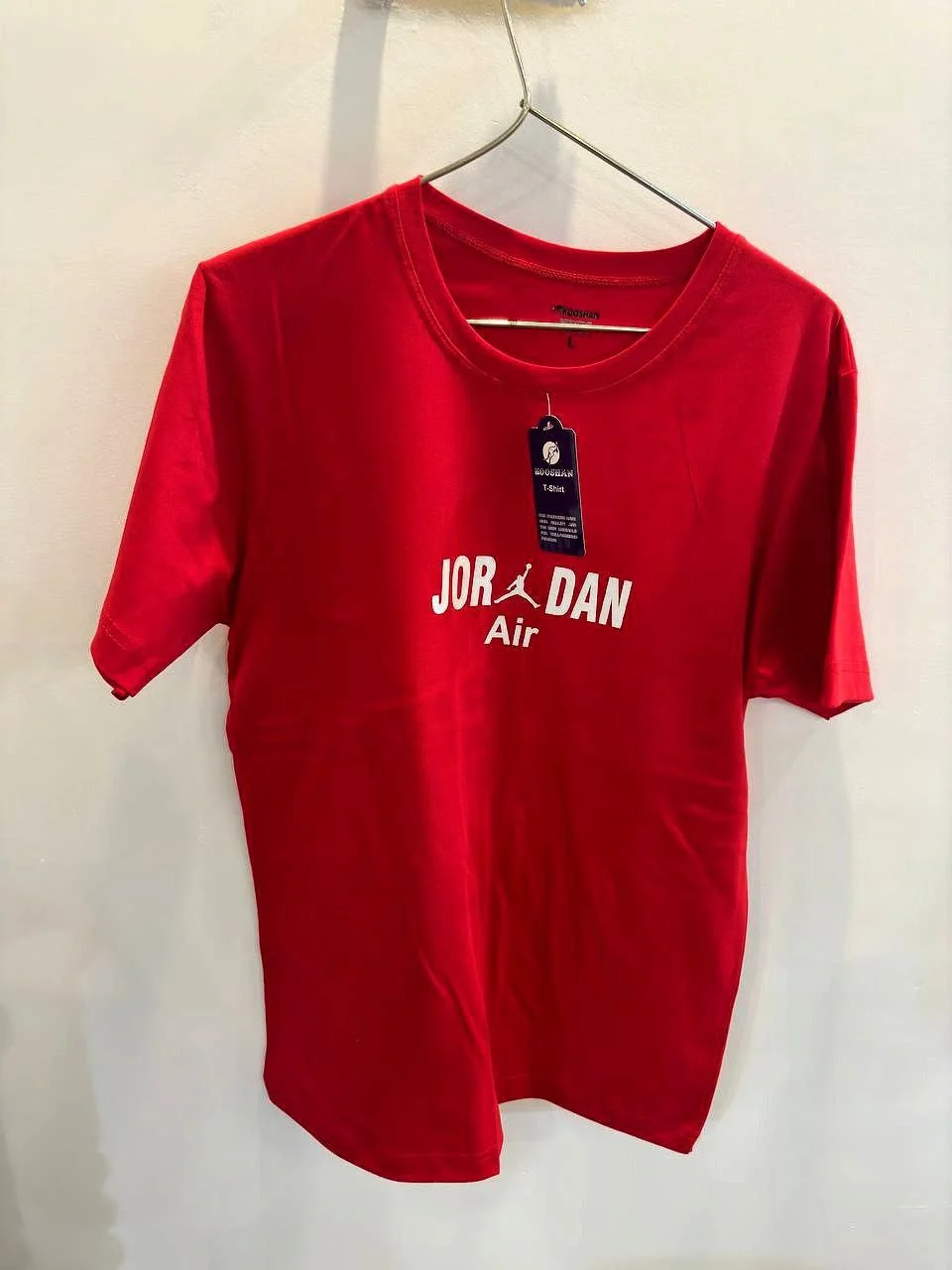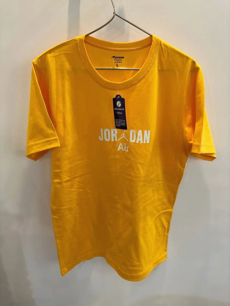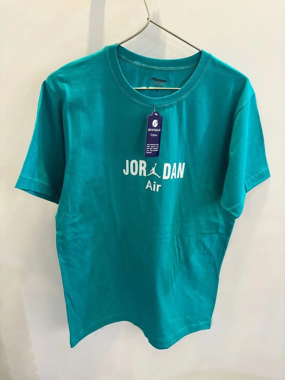 تیشرت عمده مردانه پنبه سوپر اعلا کد: k1009 با طرح ایر جردن در 4 سایز مختلف با که در پک های 24 عددی عرضه میشود. هر پک شامل شیش رنگ است و از هر رنگ سایز یک عدد(برای مثال قرمز لارج 1 عدد) وجود دارد.