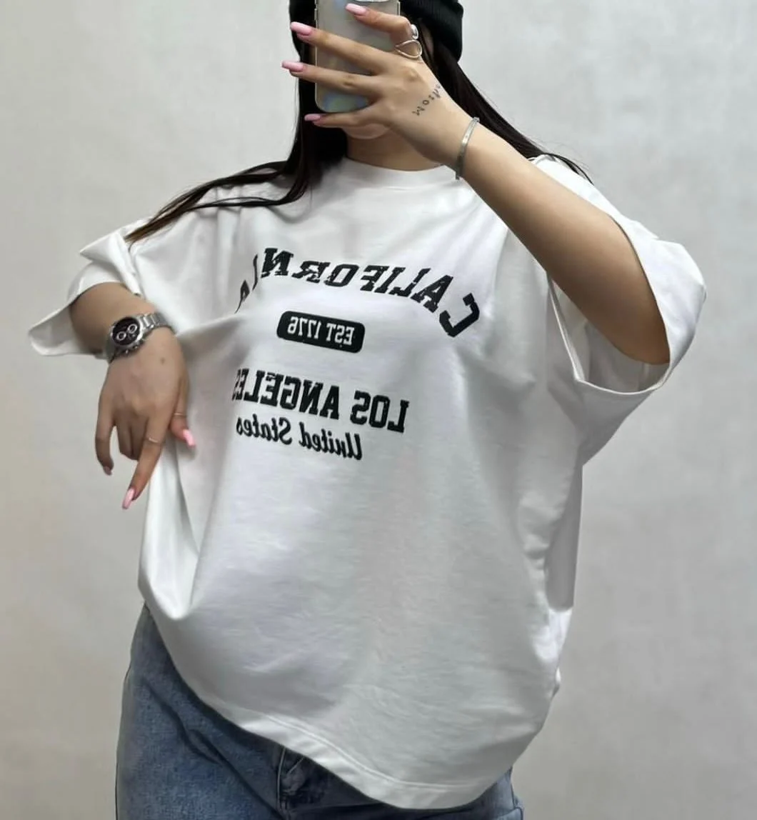 استایل باکسی به دلیل آزاد بودن و فیت راحتی که داره، تبدیل به یکی از ترندهای اصلی پوشاک زنانه شده. این مدل بهخصوص، با نوشتهی California روی سینه، حس خنکی و استایل خیابونی (street style) رو القا میکنه و خیلی از مشتریا دقیقاً دنبال چنین کارایی هستن.