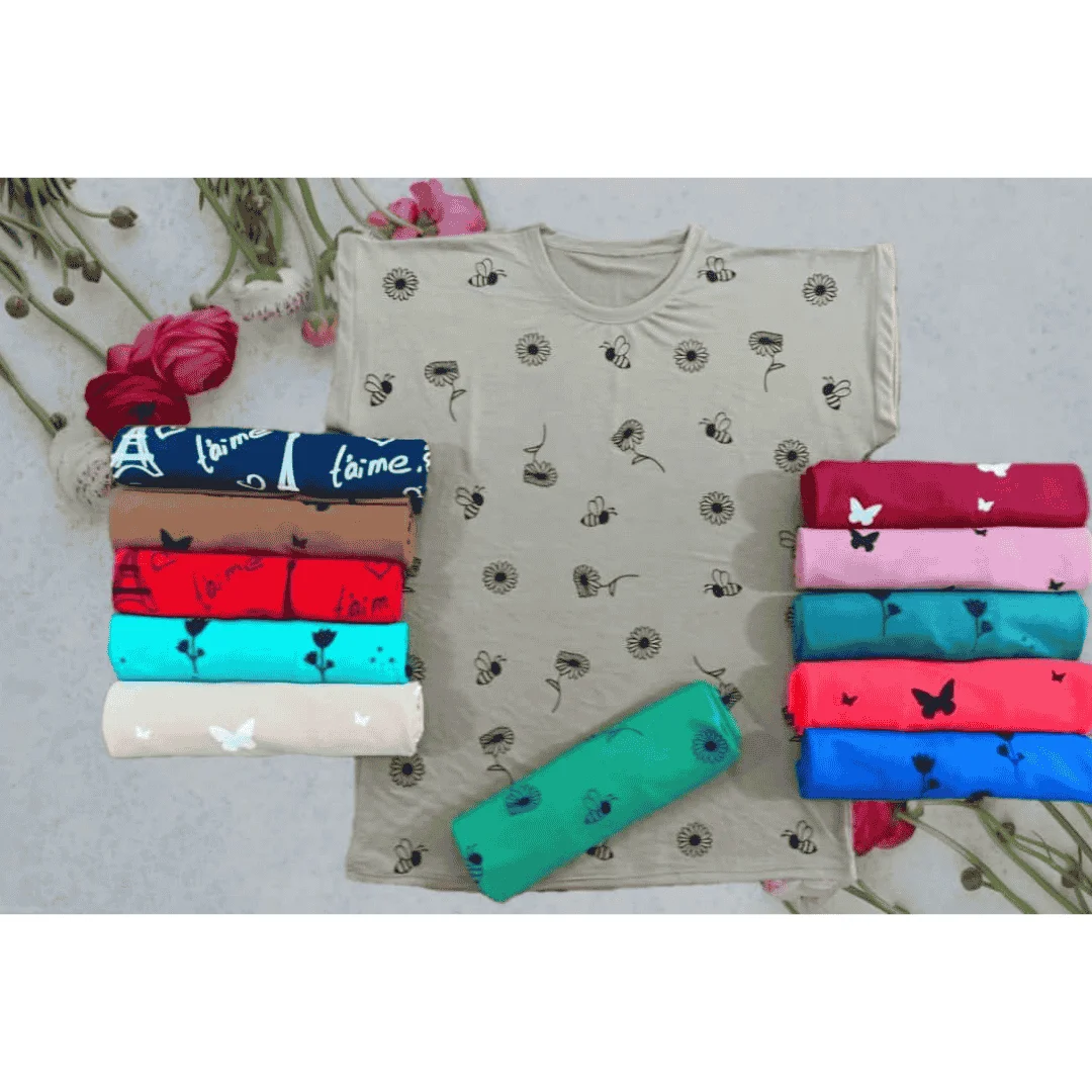 این تیشرت در فری سایز (مناسب برای سایزهای ۴۰ تا ۴۸) طراحی شده است و به راحتی روی تن مینشیند. این ویژگی باعث میشود که شما بتوانید آن را به مشتریان با سایزهای مختلف پیشنهاد دهید، بدون نگرانی از محدودیت سایز.