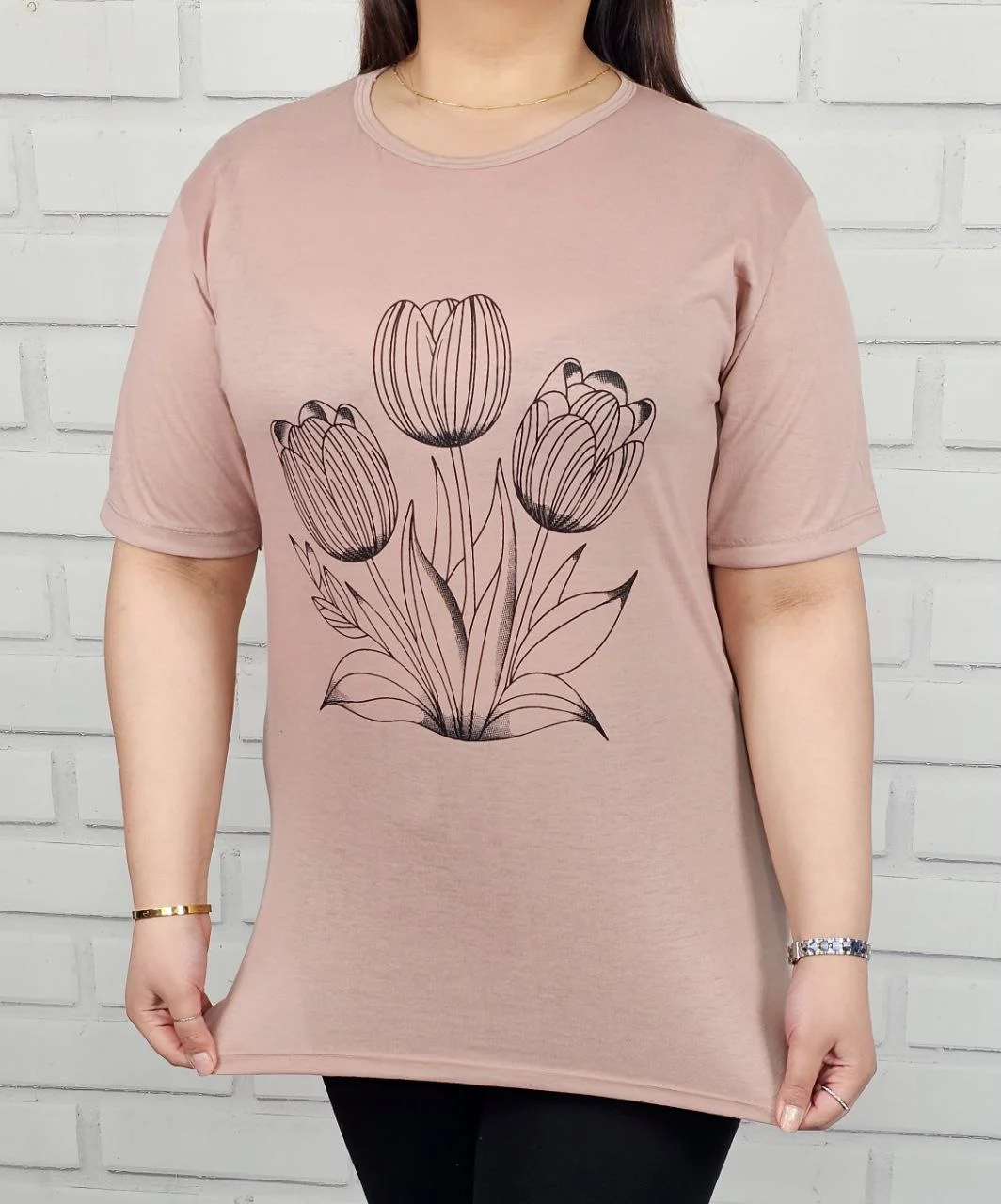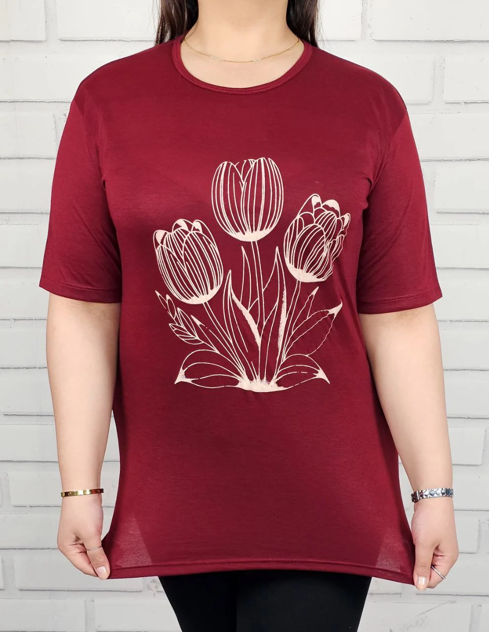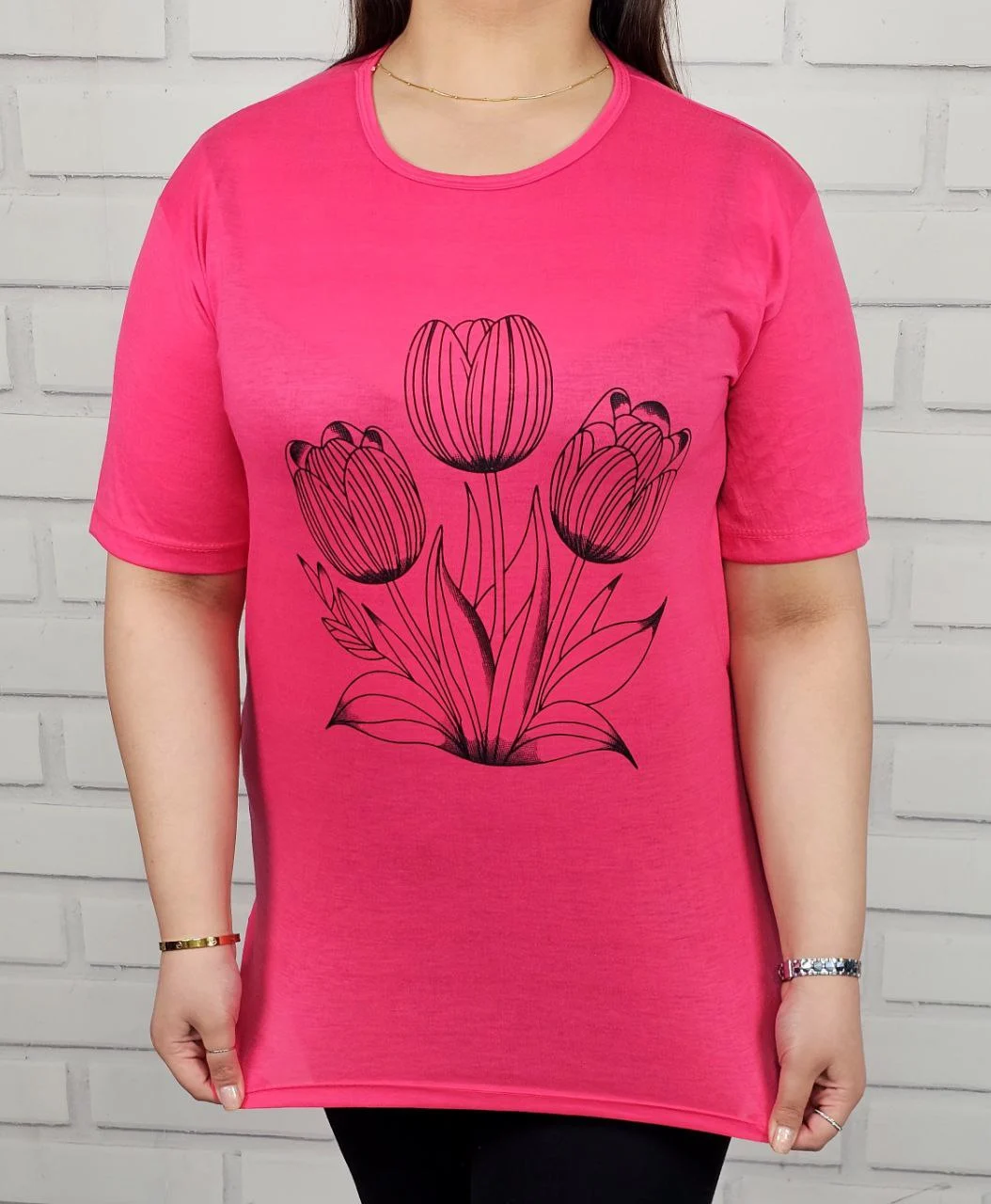 تیشرت زنانه طرح گل لاله در 10 رنگ پرطرفدار برای دسترسی به قیمتهای بهصرفه و مدلهای مختلف، به صفحه تیشرت زنانه عمده ارزان مراجعه کنید.