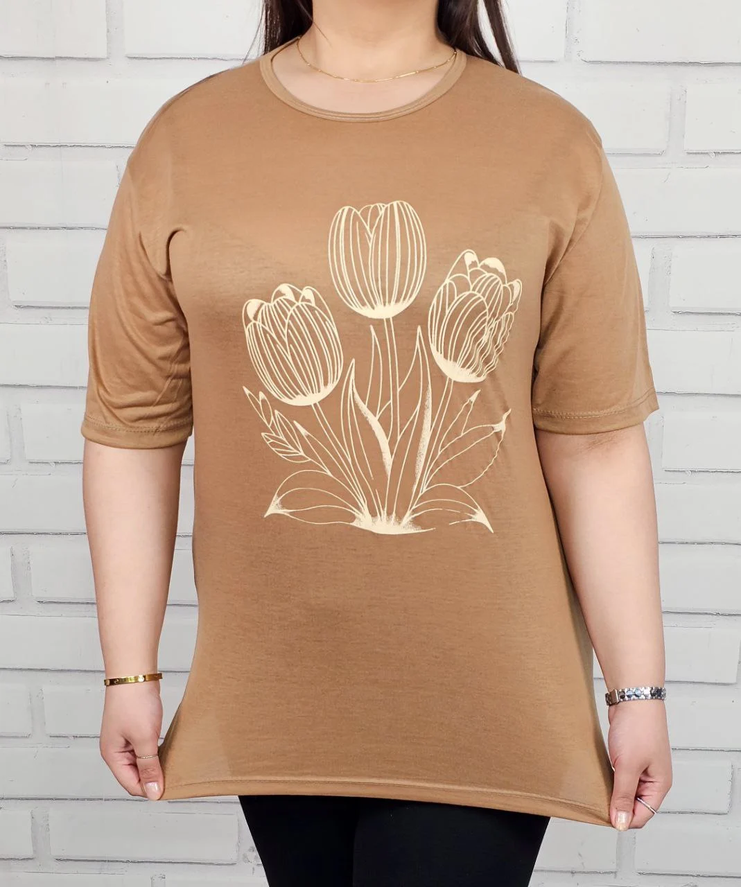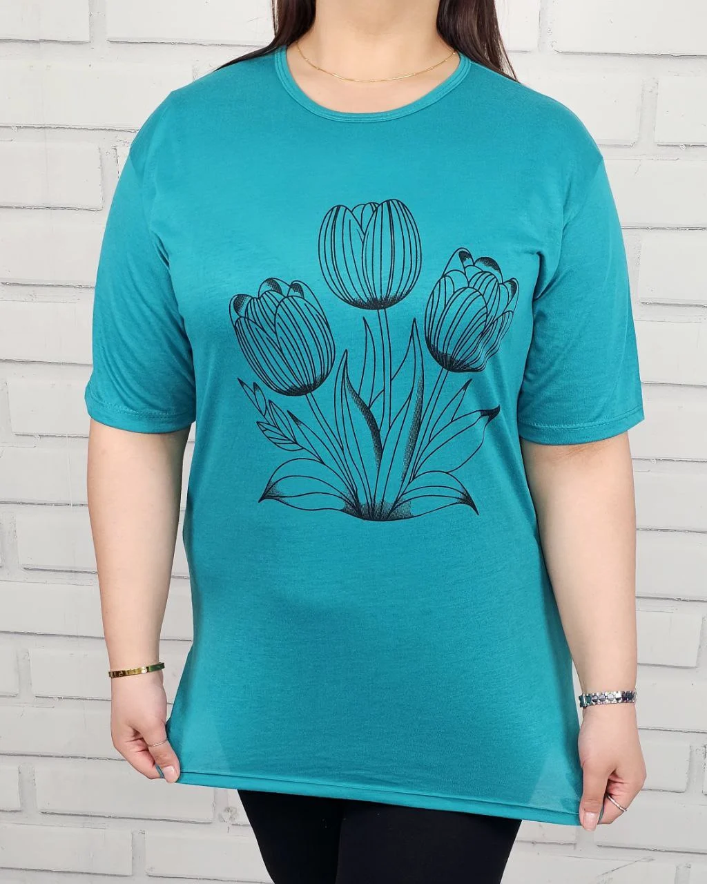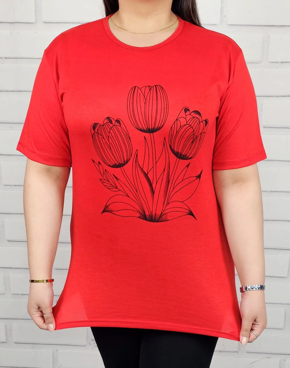 تیشرت زنانه طرح گل لاله در 10 رنگ پرطرفدار برای دسترسی به قیمتهای بهصرفه و مدلهای مختلف، به صفحه تیشرت زنانه عمده ارزان مراجعه کنید.